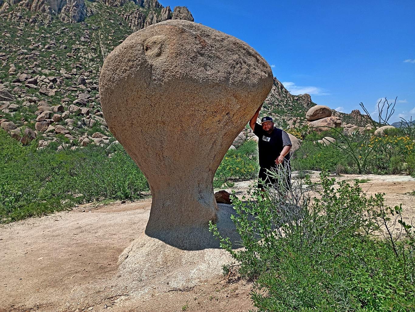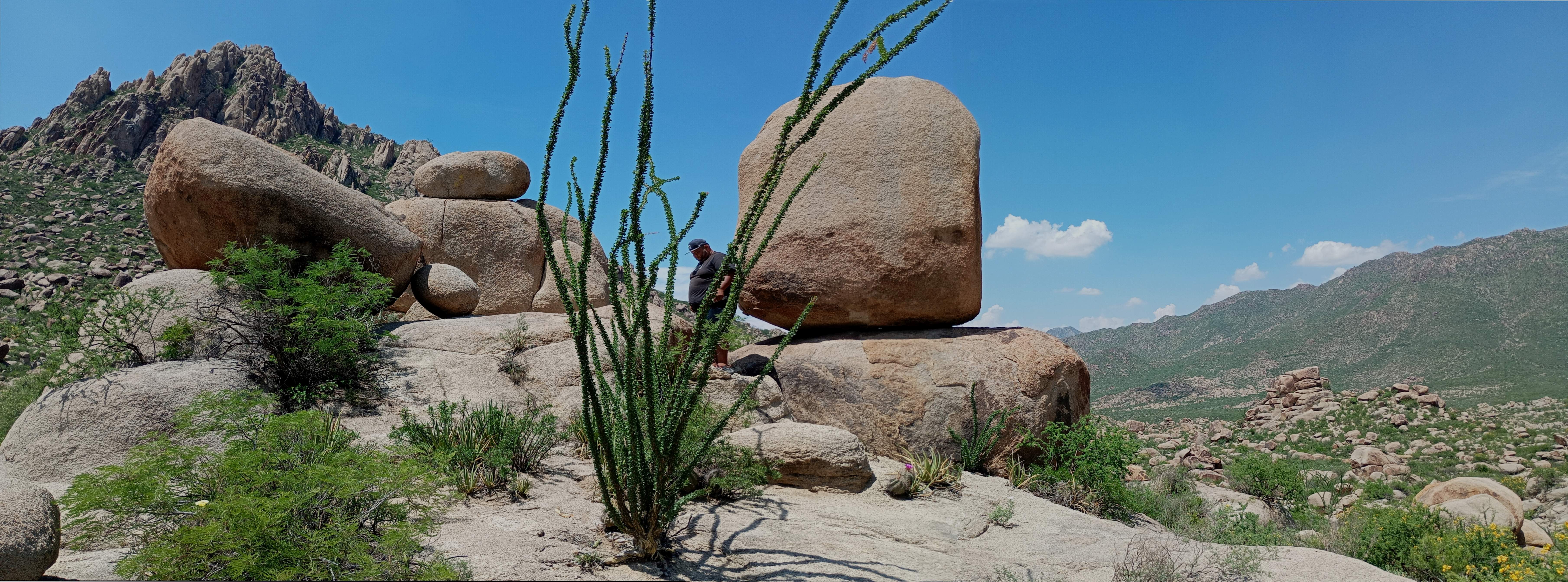 ![]() There are many odd boulder formations in the area. The question here is just how could these rocks form as they did? |