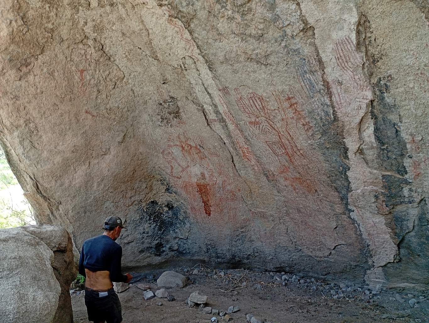 ![]() Near the center is this large rock with paintings from the Ancient People on it. |