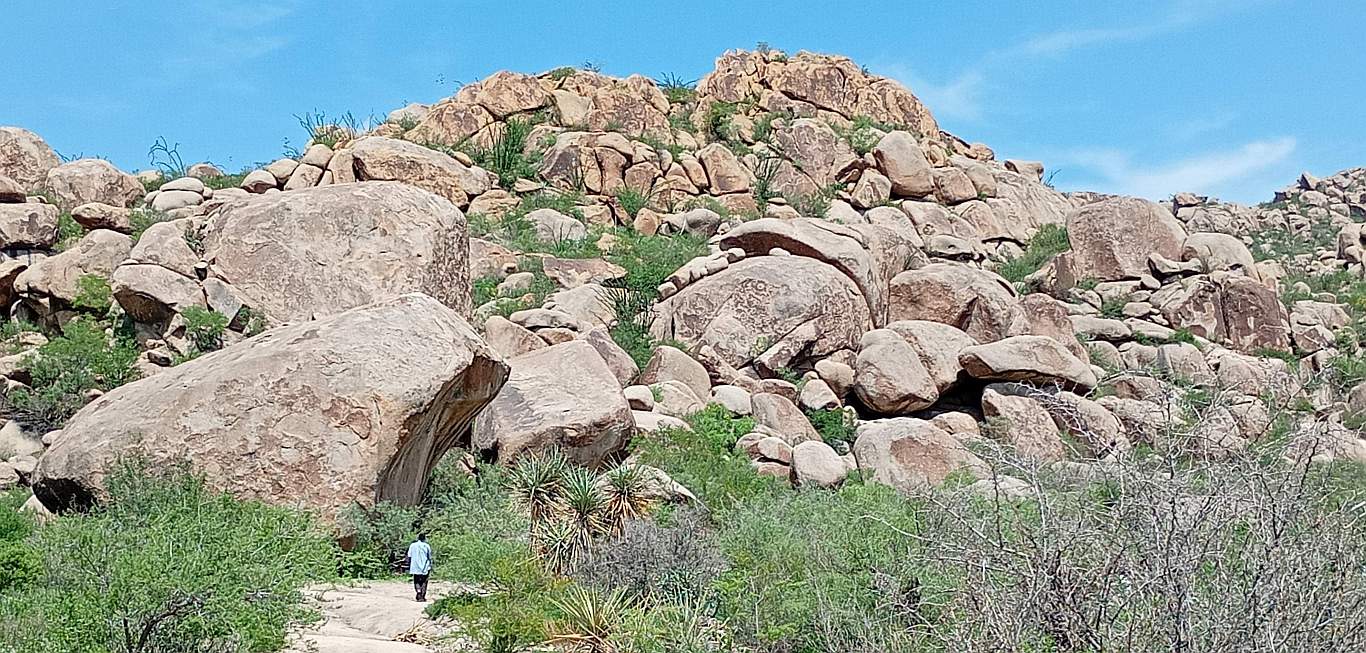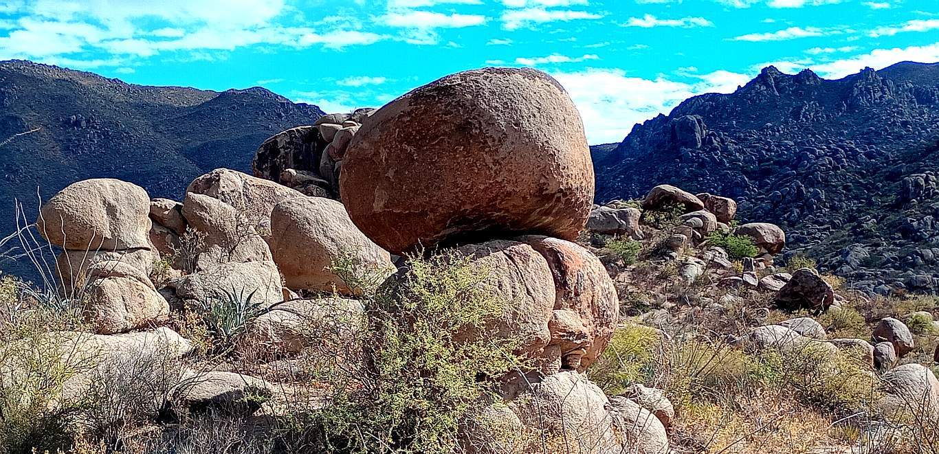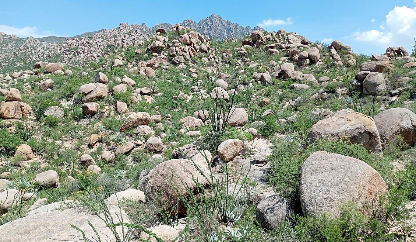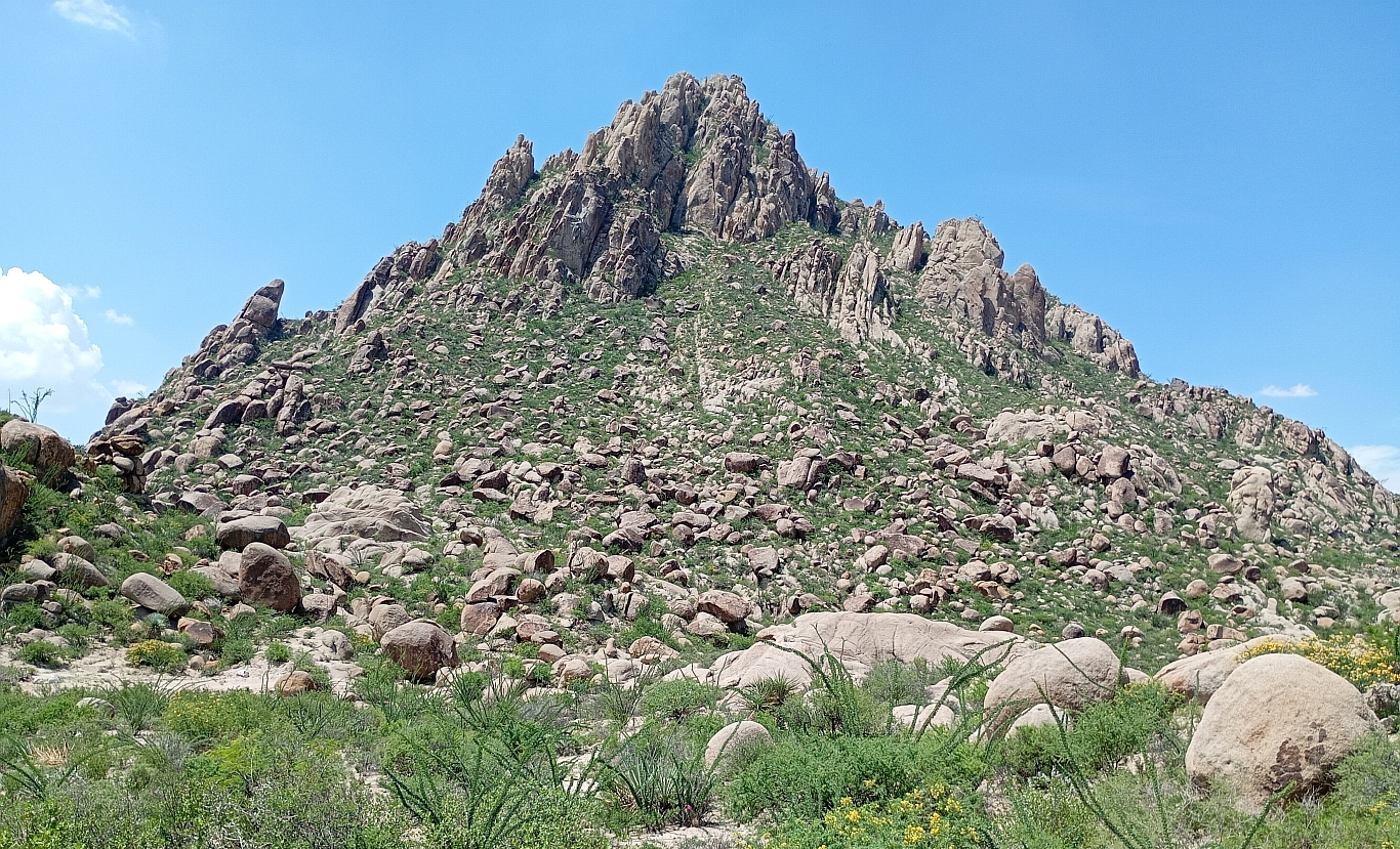 ![]() Another view of the central formation and the surrounding boulder field. |