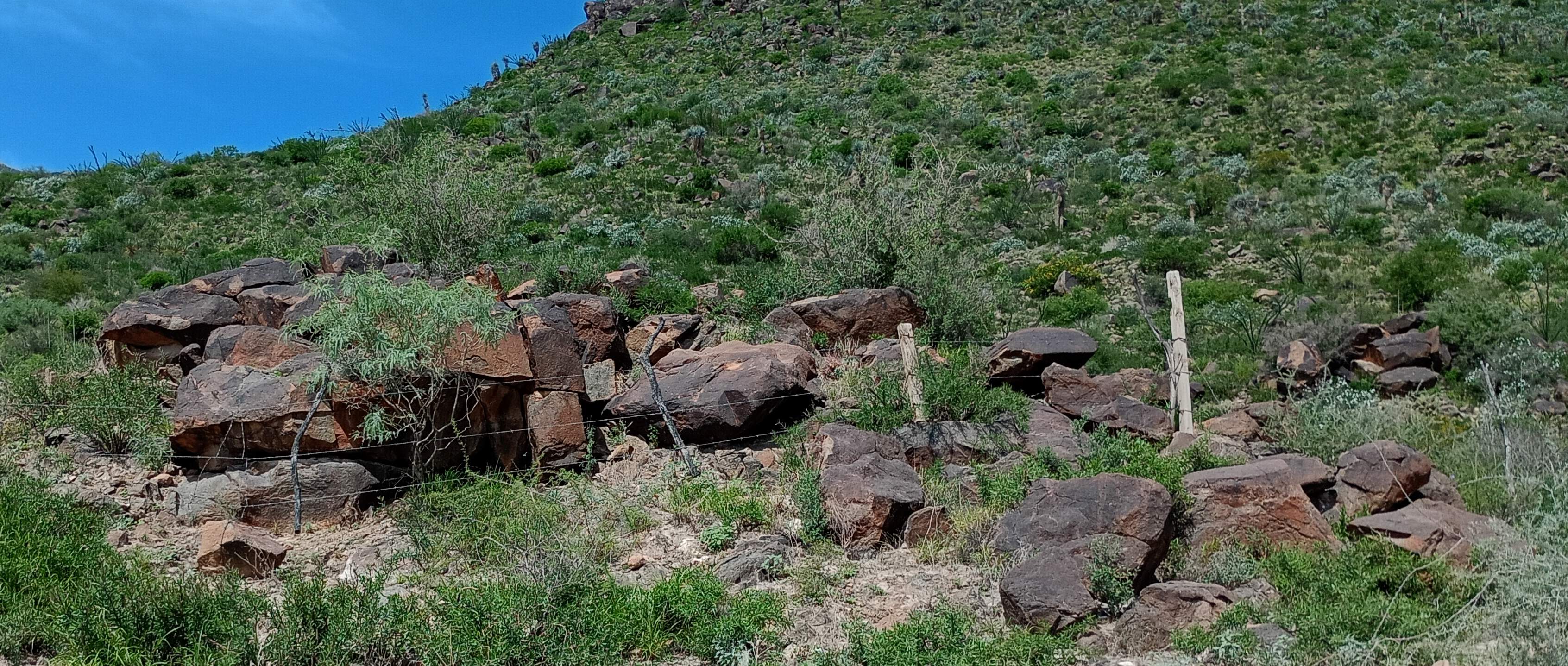 ![]() Boulder fields. Many areas here have these boulder fields which look like the boulders 'rained down' on the area. Much of the land here is covered with these boulders. Click on this image to expand it and you can see that the far hills are also covered with these boulders |