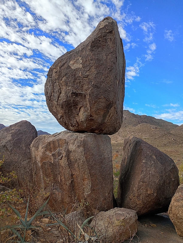 ![]() A very interesting formation. How the rock in front came to be is a question. A short 360 degree video is |